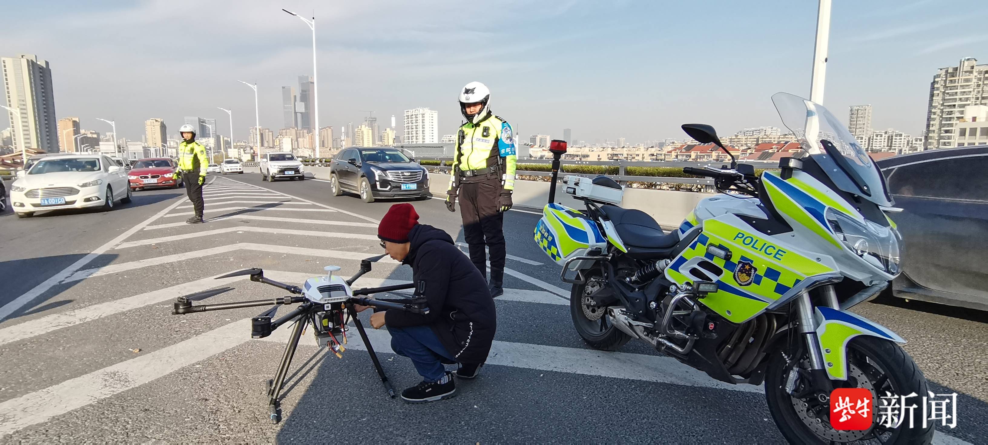 记者采访获悉,南京交警以无东说念主机长入路面岗点执勤的模式,设备健全“金陵铁鹰”勤务新模式,将便携式无东说念主机搭载于铁骑摩托车的后备箱,实时对周围说念路交通开展空中巡航、流量不雅测、飞动窥探,末端罪犯劝导和交通疏导等功能,还可对违泊车辆喊话驶离、持拍取证,尤其专项开展内环快速路开车玩手机“慢驶”专项整治行径,全力保险路面畅安有序。